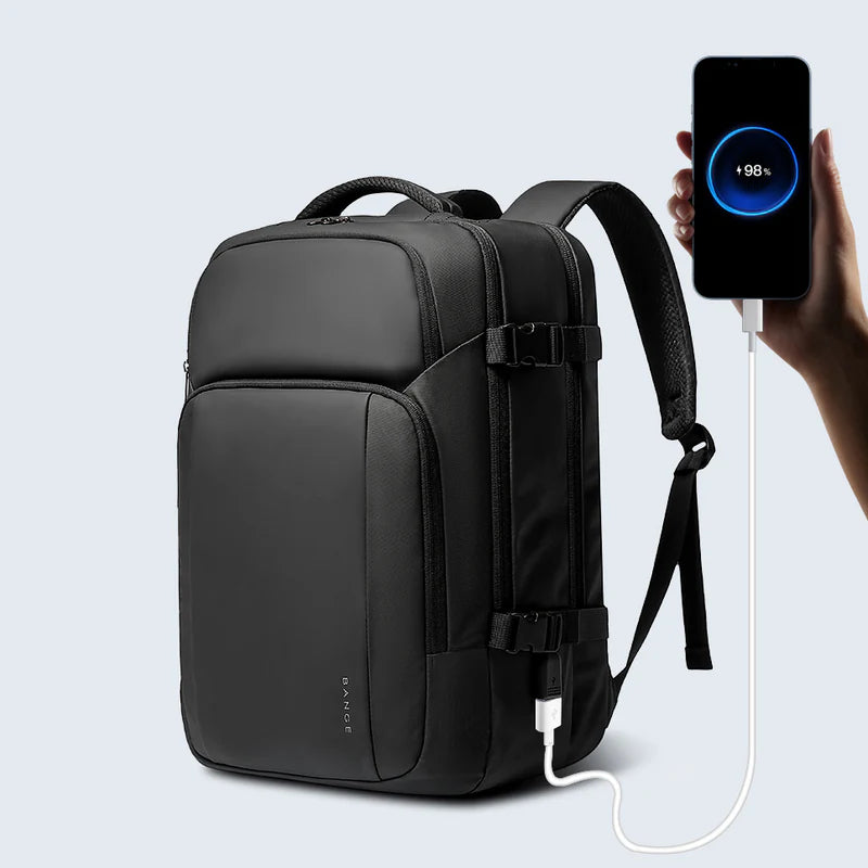 This compact backpack offers multiple storage options and a built-in USB port for easy charging of your devices on the go.